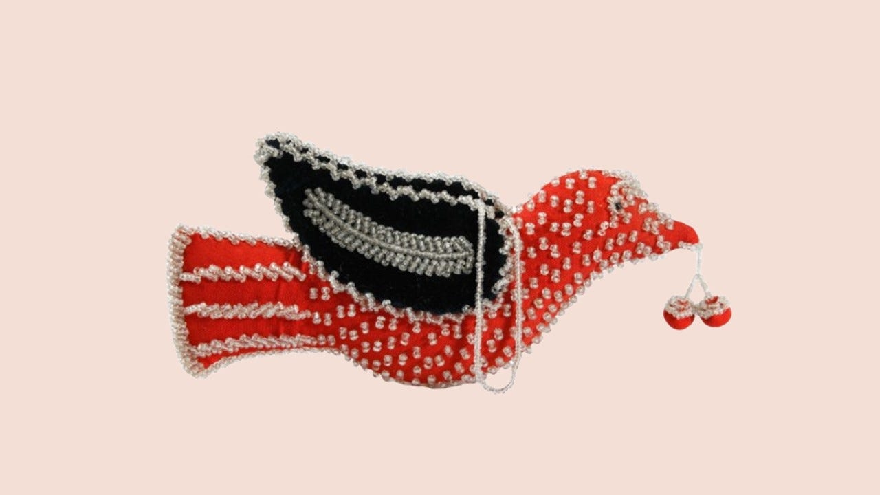 No Wereldmuseum, em Amsterdão, há um pequeno pássaro em veludo bordado a missangas e contas de vidro. Acompanha-o um painel que diz: