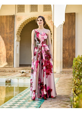 A fluidez feita arte! Este vestido longo destaca-se pela sua capa de chiffon integrada, que envolve a silhueta com suavidade, complementada por um corpete ricamente bordado com motivos florais e detalhes em lantejoulas, ton-sur-ton.