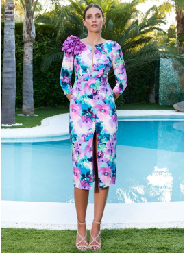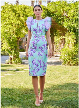 Vestido curto, com assimetria frontal, na parte inferior da saia, Decote em V e drapeado com efeito apanhado na cintura. Disponível noutras cores e tamanhos.